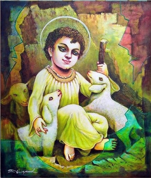 This painting of Baby Jesus with lambs represents nothing…but a sense of immense innocence and purity. The essence of pure innocence and kindness just reflects off this piece of intense art. Which burns with the amount of love and compassion Jesus Christ possesses even as a child. Any devotee of Christ, who has this painting will soften his/her own heart and become more compassionate towards all of god’s creation.
