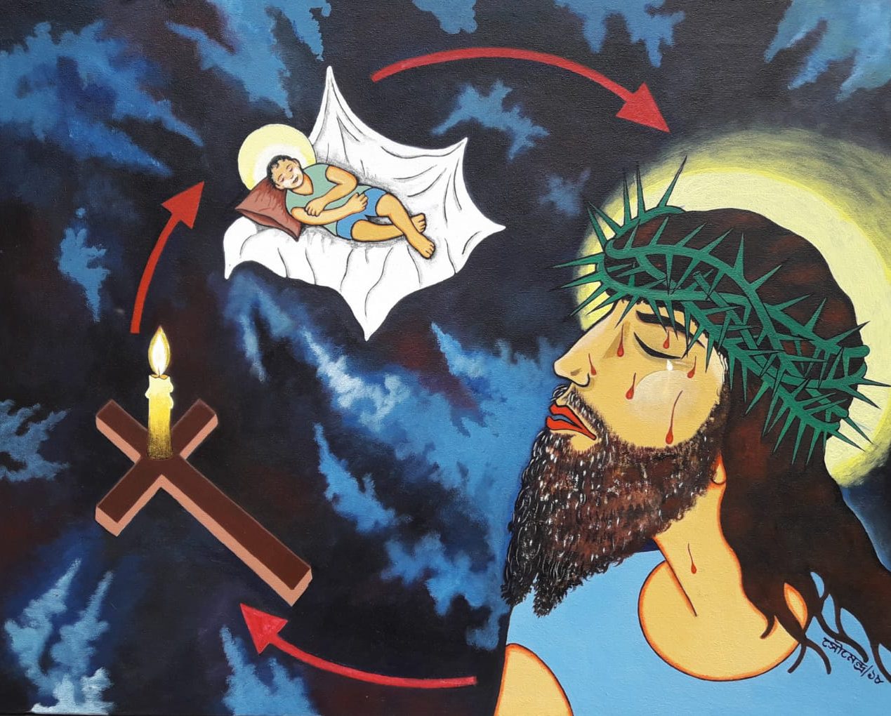 This Jesus Painting or Jesus Child portrays the sorrow experienced by Jesus Christ. And so, Jesus is weeping as he is sad to see his child suffering. It is a beautiful painting wherein, the artist has shown the love Jesus Christ has for all his children. The one who has this painting, especially at the time of Christmas will fill his/her own heart with more love for Jesus Christ.