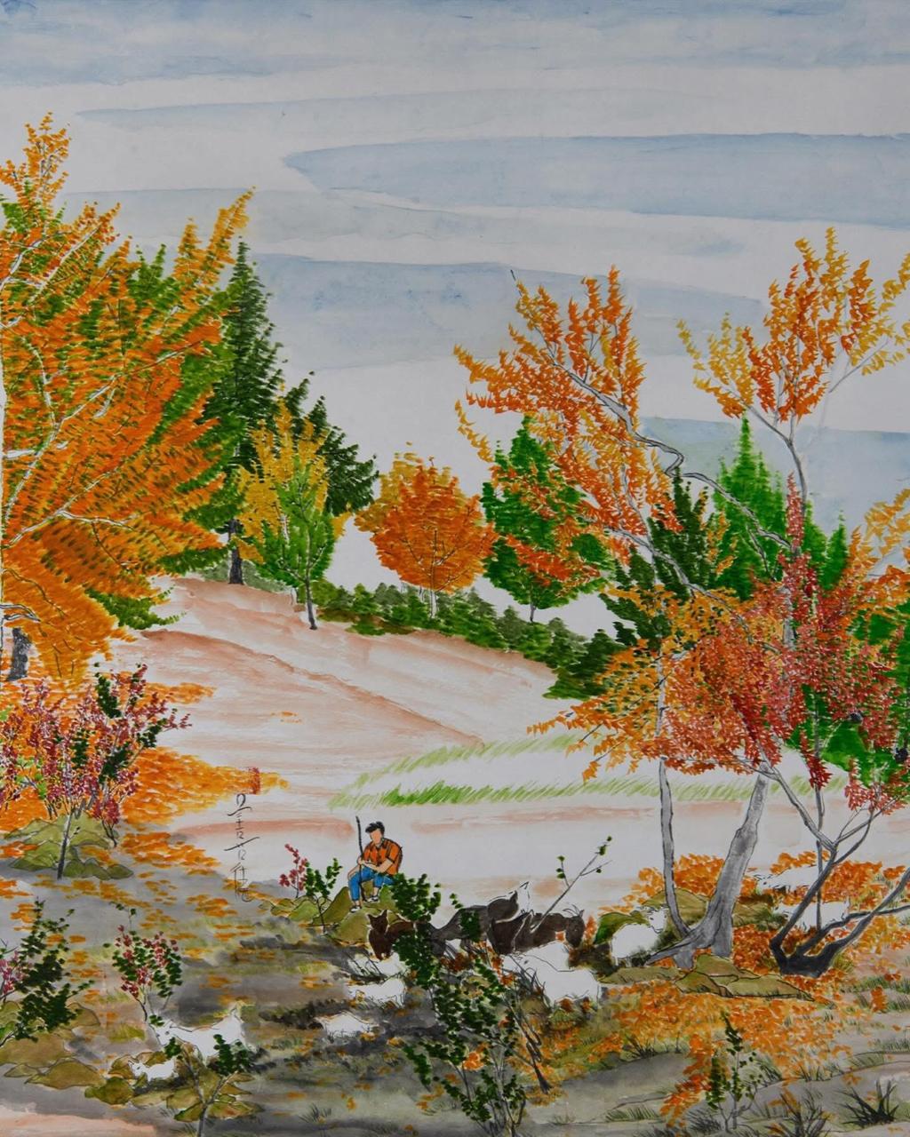 | Medium | Chinese style brushwork with Chinese pigmented water colours & Ink |